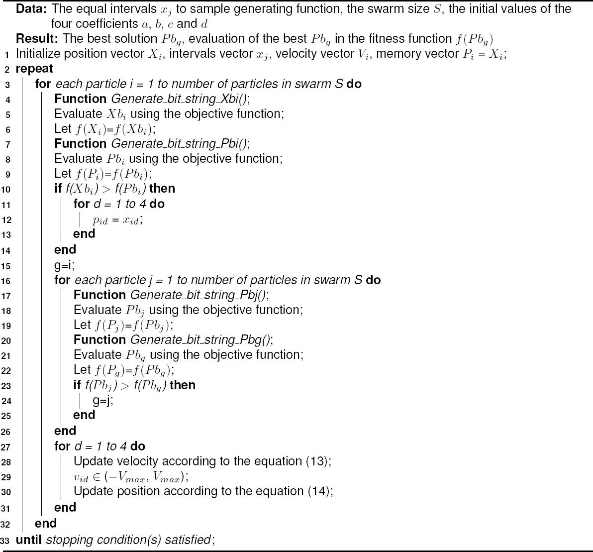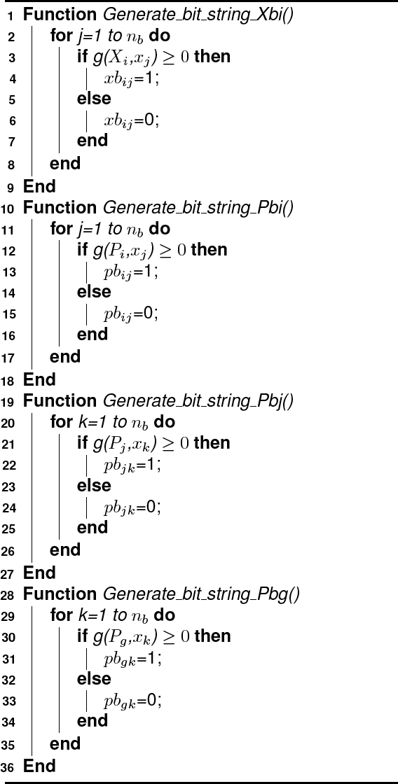 The function in (12) is called the generating function, and it is used as a bit string generator. To optimize the coefficients of the generating function, the position of a particle