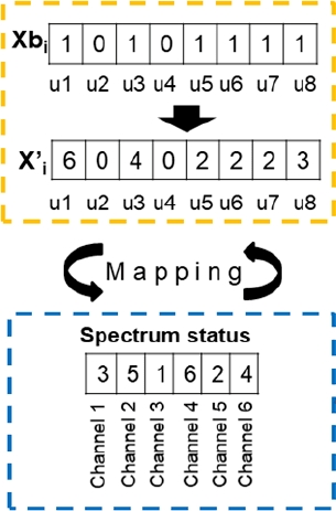 In contrast, the spectrum status vector holds the channel allocation for the primary links, so that, spectrum status vector is kept fixed through search. Mapping of