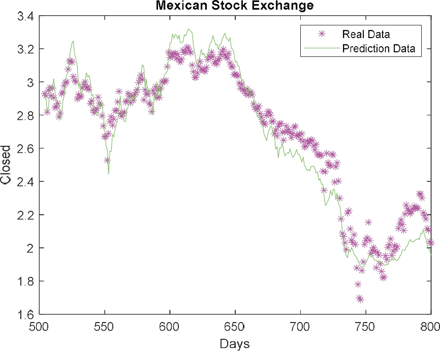 In Fig. 2, the graph of the Mexican Stock Exchange data [42] is presented. In this case, we use 800 data that correspond to period from 01/04/2016 to 31/12/2019. We used 70% of the data for the RNN trainings and 30% to test the RNN.