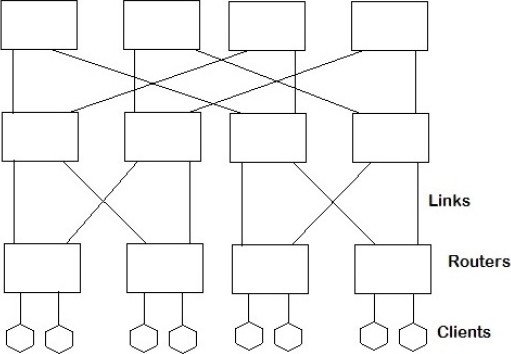 Besides, as every switch had at least one path to every other switch the routing was quite simple and easy to simulate. But later researches showed that with the increase in network size, there was a high probability for packet loss [17, 15, 8, 20].