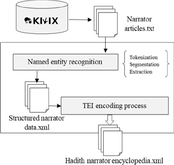 To achieve the final hadith narrator encyclopedia, we start with a conceptual study of a creation system for the encyclopedia. The realization of this system follows a symbolic approach. It based on a method composed of three main phases. Fig. 2 illustrates the general architecture of the system.
