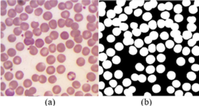 Fig. 1 Microscopy image and coarse segmentation (a) original image (b) coarse segmentation from image (a)