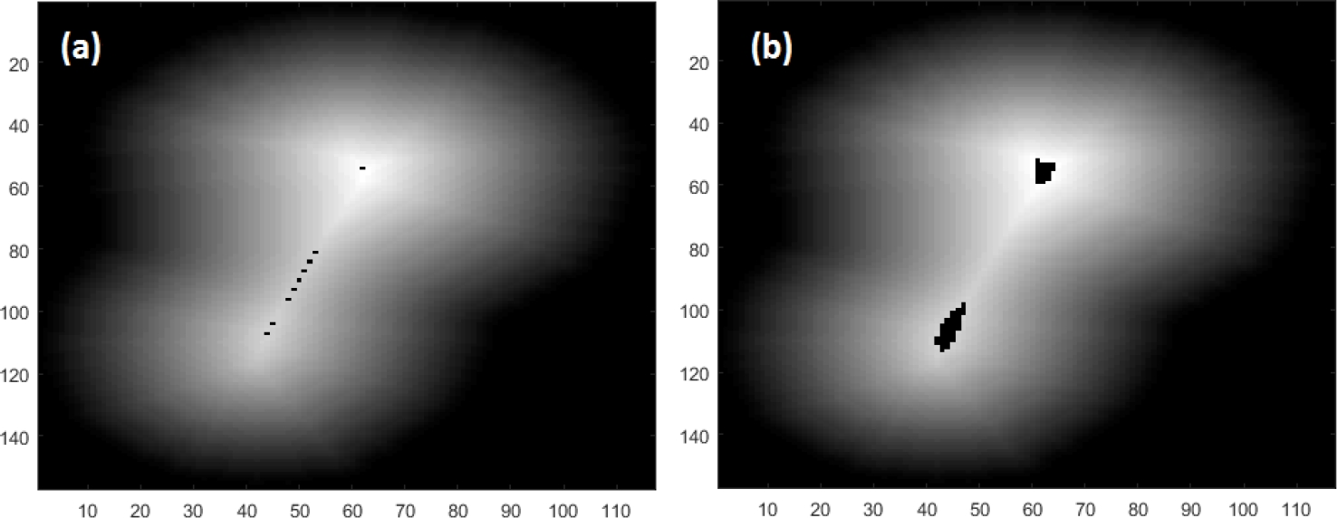 In this work, three methods were applied and compared in order to determine the valid regional maxima present in the binarized clusters.