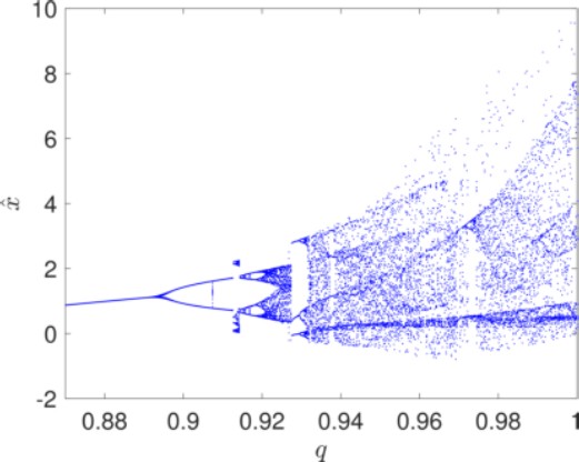 Figure 1 shows the bifurcation diagram for the fractional order