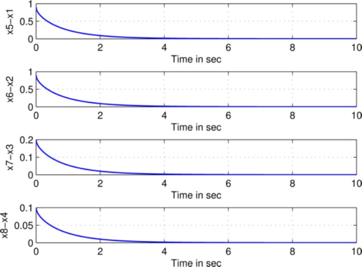 The graphical presentation of the synchronization through error analysis is depicted in Fig. 6, we can see that we got the required synchronization via active control method.