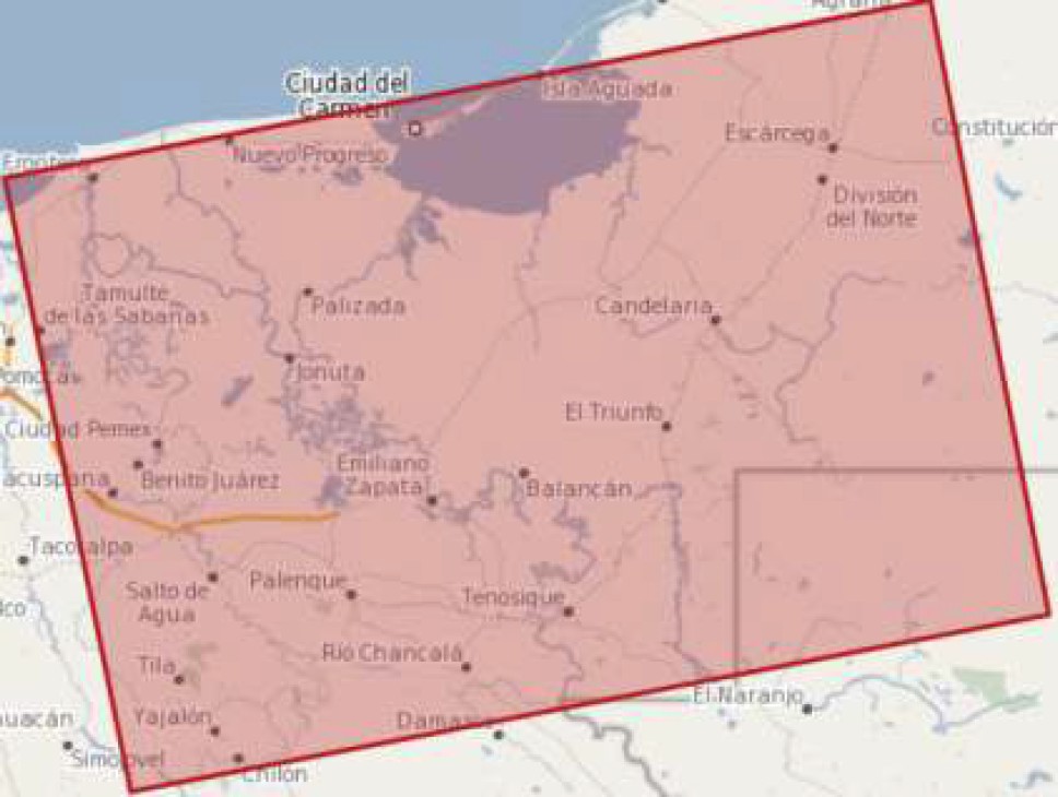 Cross-polarized (VH) SAR images obtained from the Sentinel-1 satellite through the Copernicus Open Access Hubfn platform were used to map the floods. These images are found within a tile that covered the states of Campeche, Chiapas and Tabasco (See Figure 3).