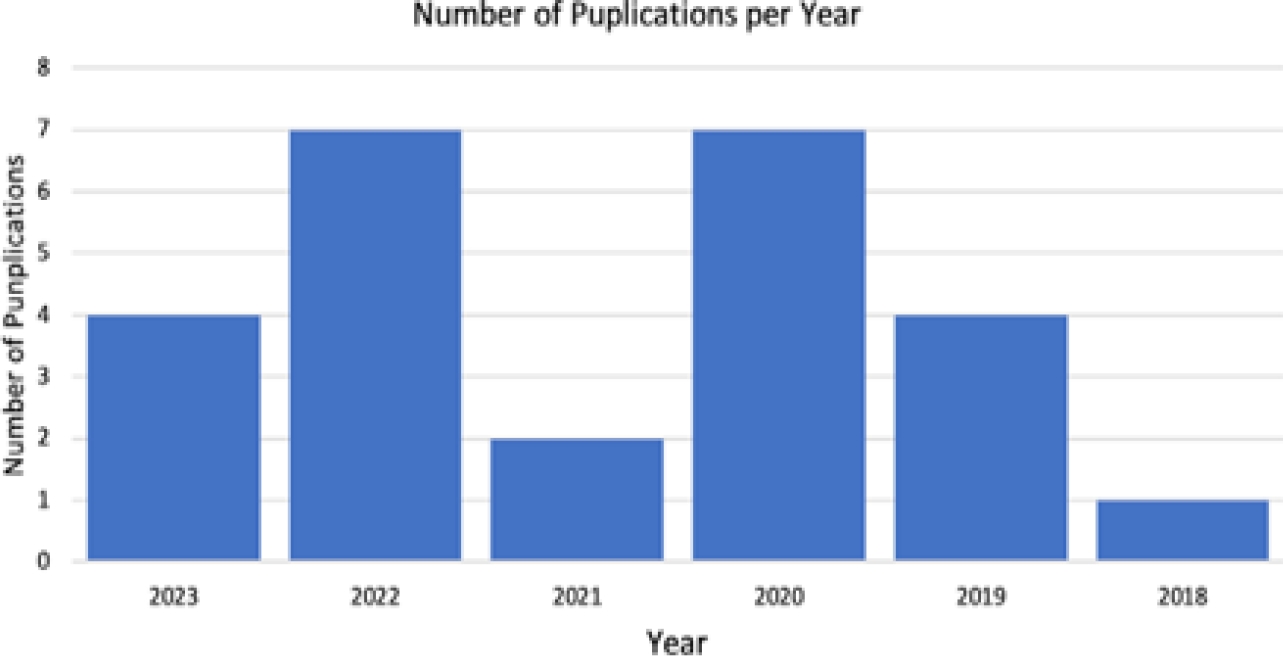 Twenty-five articles have been selected to be included in the literature. Figure 3 shows the number of publications per year. The results are divided into three subsections as follows: