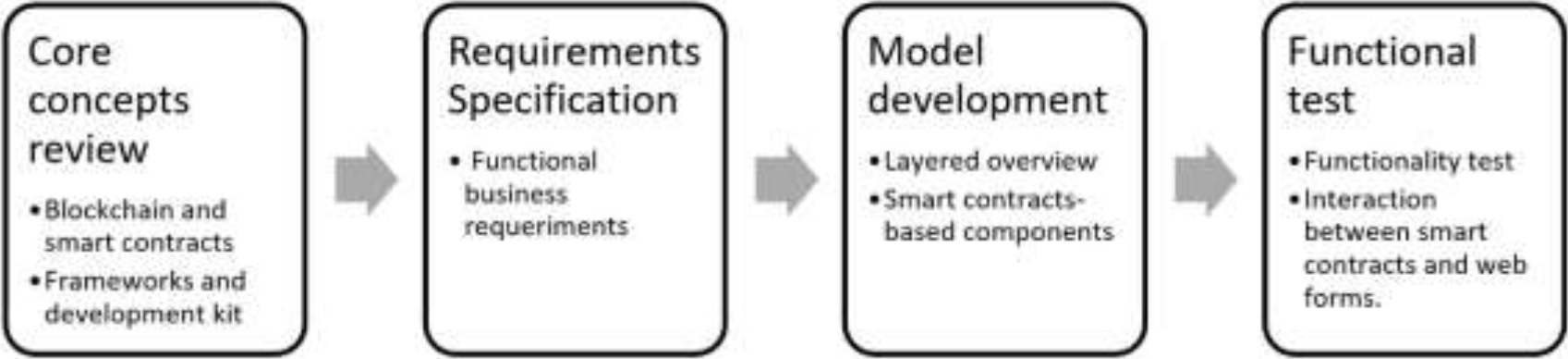 In this context, the paper sections are as follows. Section 2 explains the work methodology. Section 3 describes the materials and theoretical core that support our research proposal. Section 4 details the requirements and development of a web prototype based on blockchain and smart contracts. Finally, section 5 describes the conclusions and future work that arise from this paper.