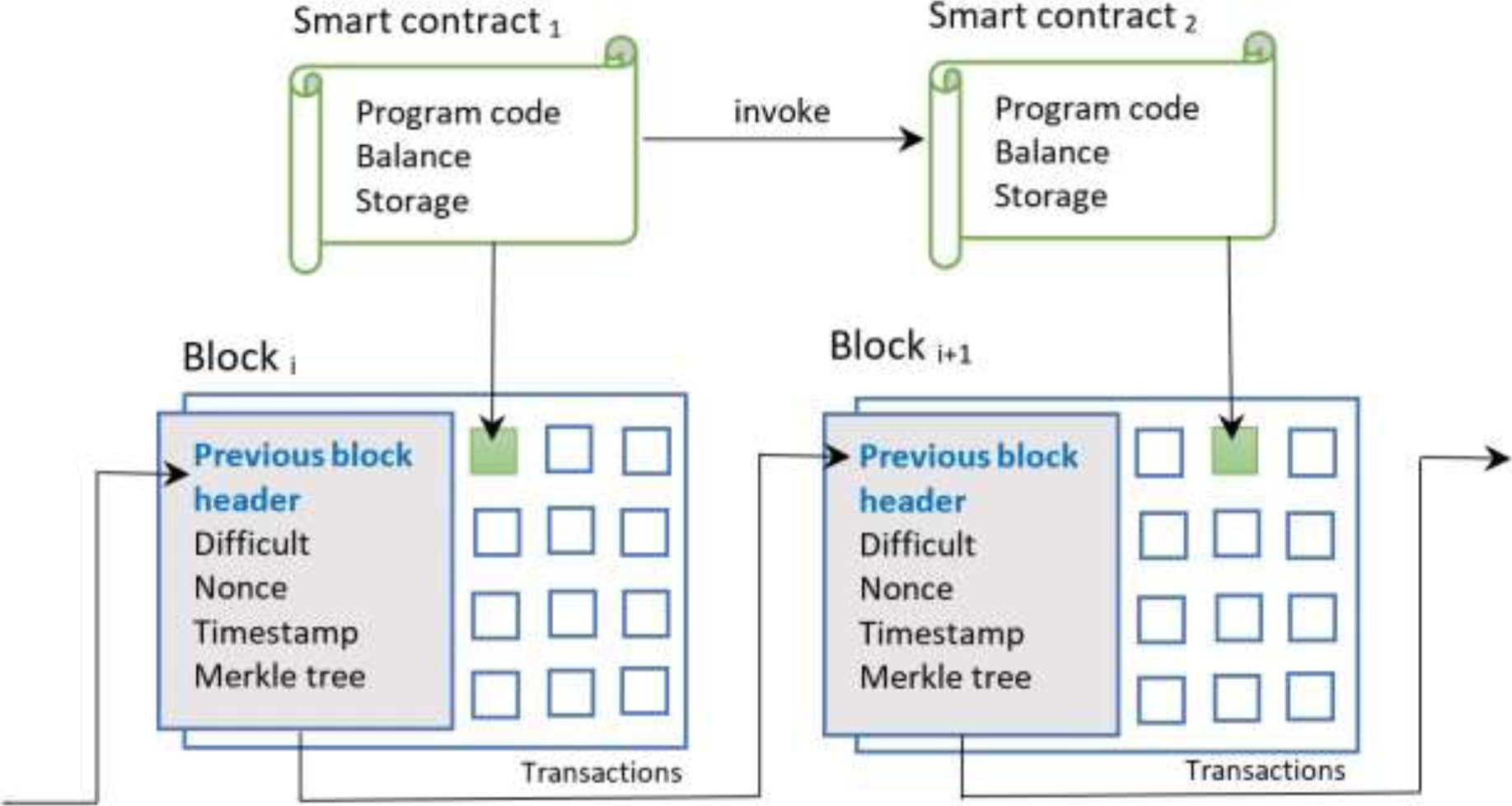 A smart contract based on blockchain inherits the property immutability; that is, once implemented it is impossible to adulterate its coding and of course, the purpose of it. In this context, a smart contract guarantees strict compliance with a pre-contractual agreement without exception. Figure 2 shows how smart contracts interact with the blockchain.