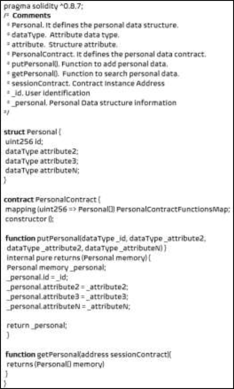 These conditions are previously agreed by the participants. Each smart contract is implemented through the publication of a transaction and can be invoked by an external user account or by another contract. A contract is defined by the following structure, namely: (a) Turing complete language-based program code, (b) account balance to receive and send virtual currencies, y (c) storage for writing, reading, modifying, and reading data variables.