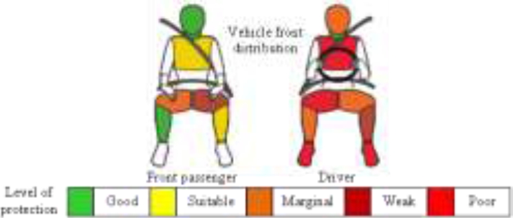 Based on the previous report, various thoughtful injuries can be assumed both for the driver, as for the front passenger, but the report states that both occupants will have a lower risk of serious injury. However, it remains a vehicle with very poor user protection and an unstable structure [30].