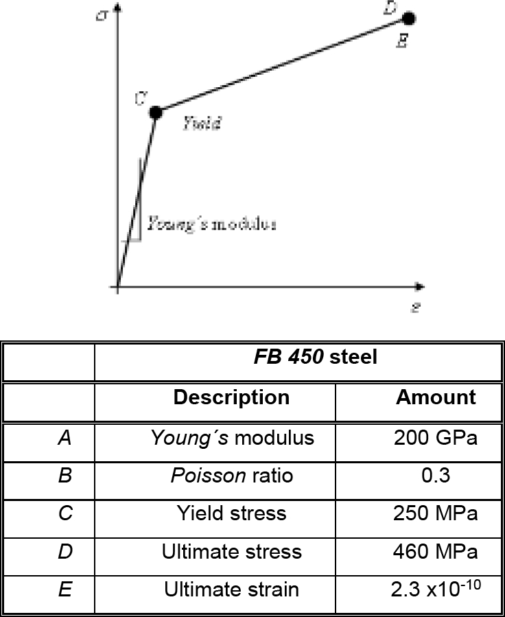 The mechanical properties of the different steels to be used are shown in the following table. Bilinear elastoplastic performance of the materials is considered, as illustrated in Figure 4.