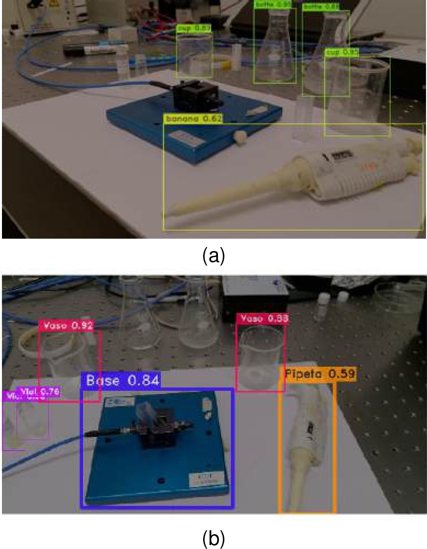 Images, thus managing to adequately retrain a CNN and obtaining a mean Average Precision mAP@0.50 of 0.93. The importance of creating custom image sets for application to specific problems should be highlighted. CNNs trained with custom image sets perform better than CNNs trained with generic image sets. This advantage is due to the greater precisión in the identification of specific instruments, avoiding confusion such as identifying a beaker and a flask as a “bottle” using generic sets of images.