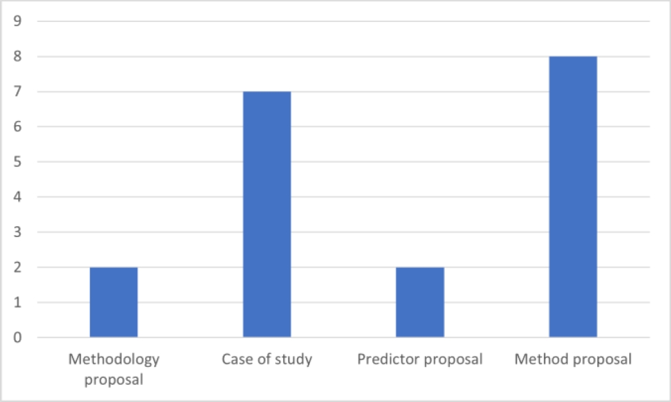 Based on the contributions of the work, the scientific articles analyzed are categorized as shown in Fig 3: Within the "Method Proposal" category, these papers are focused on introducing innovative algorithms for the generation of prescriptions.