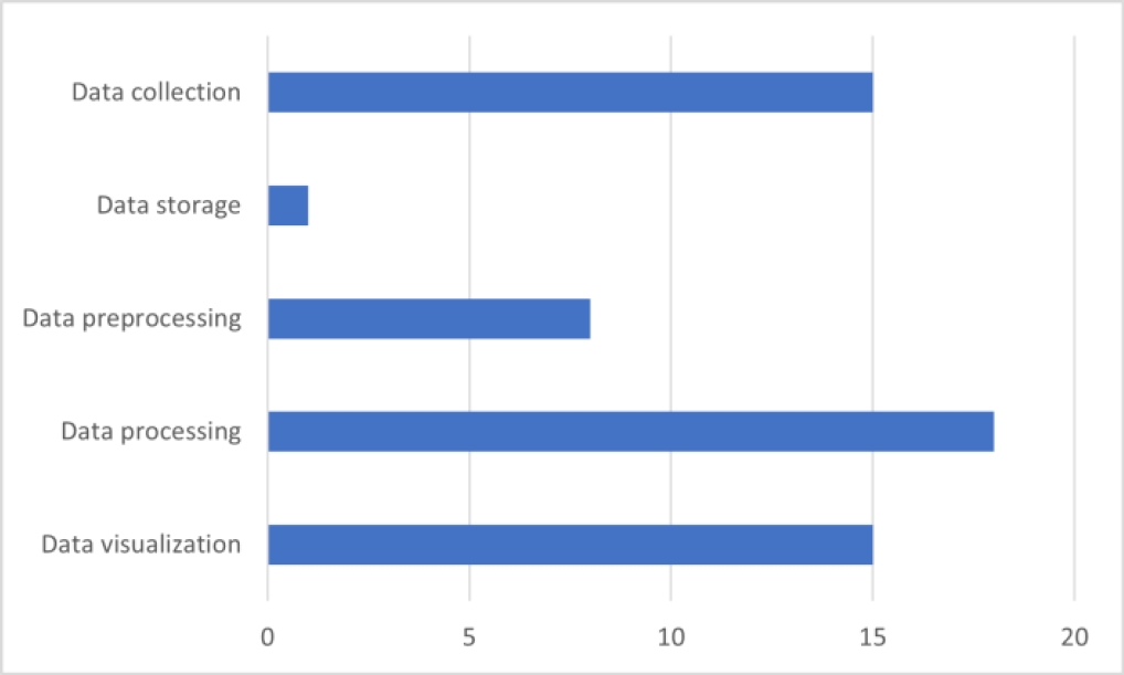 The distribution of the Data Science phases involved in the selected works is presented in Fig 4. The discussion of the reviewed works is presented in the following section.