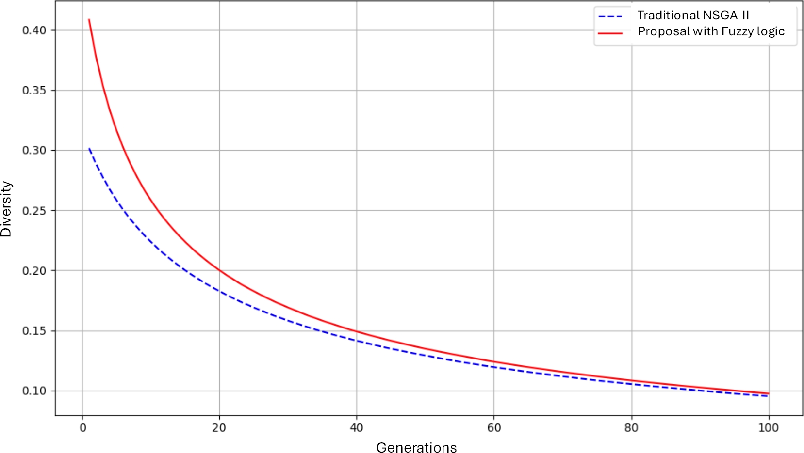 — Dynamic Parameter Adjustment: Future work could explore methods for dynamically adjusting the fuzzy logic parameters during the execution of the NSGA-II algorithm.