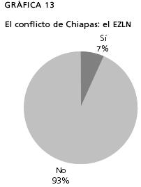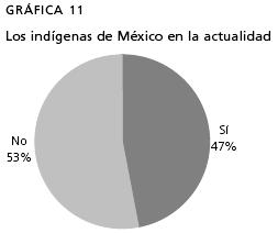 En lo que respecta a un tema como los indígenas en la actualidad, tan importante para la sociedad mexicana si se quiere asumir plenamente la convivencia intercultural, 53% de los alumnos dice que no ha trabajado el tema en clase, pero en las entrevistas nos hemos encontrado con alumnos que creen que no existen indígenas en el México actual. Si relacionamos esto con el conflicto de Chiapas, notamos que 93% de los alumnos no ha estudiado el tema ni sabe qué sucedió ni qué sucede allí, no saben qué es el Ejército Zapatista de Liberación Nacional (EZLN), no conocen al subcomandante Marcos, ni la problemática de los habitantes de la región. Estamos entonces frente a una desconexión total con respecto a temas de actualidad. Este problema es muy grave, no es de extrañar en consecuencia la información proporcionada por la I Encuesta Nacional sobre Discriminación, realizada en mayo de 2005, que señala que 34% de los entrevistados expresa que "para que los indígenas salgan de la pobreza lo único que tienen que hacer es no comportarse como indígenas" y 43% opina que "los indígenas tendrán siempre una limitación social por sus características raciales", "40% de los mexicanos está dispuesto a organizarse con otras personas para solicitar que no permitan a un grupo indígena establecerse cerca de su comunidad", "90% de los indígenas opina que en México existe discriminación por su condición" (Sedesol, 2005).