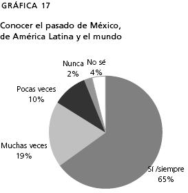 Teniendo en cuenta todas estas propuestas del plan de estudios, le preguntamos a los jóvenes "¿Para qué sirve la historia?", las respuestas pueden observarse en las gráficas 17 a 22 (18, 19, 20, 21).