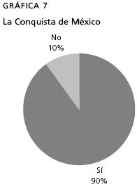 Podemos extraer algunas conclusiones de estas gráficas. Temas como la Conquista y la Independencia de México son abordados en la educación secundaria; pero las conexiones con América Latina son casi nulas o inexistentes. La gráfica de las revoluciones de independencia de la América española indica que 55% de alumnos sí las estudiaron. Consultando el libro de texto utilizado podemos afirmar que este tema es abordado de manera conceptual, muy superficialmente, sólo nombrándolo en unas pocas líneas.