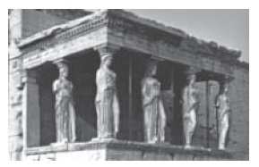 A continuación se muestra una fotografía de unas estatuas denominadas cariátides, construidas en la Acrópolis de Atenas hace más de 2500 años. Las estatuas están hechas de un tipo de roca llamado mármol. El mármol está compuesto por carbono de calcio.