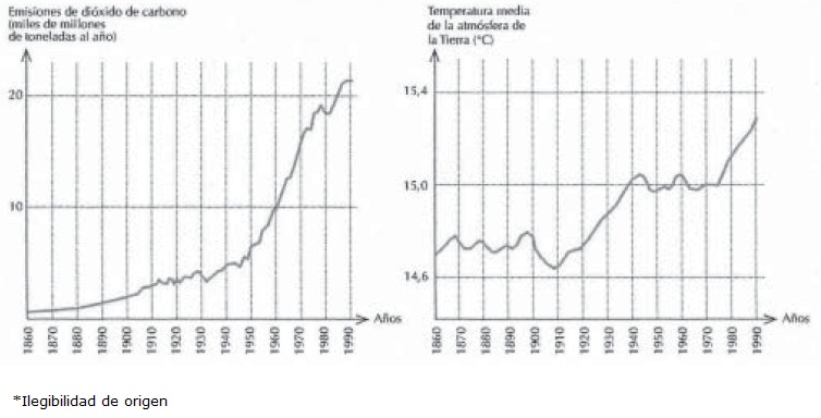 Un alumno llamado André se interesa por la posible relación entre la temperatura media de la atmósfera de la Tierra y las emisiones de dióxido de carbono. En una biblioteca encuentra los dos gráficos siguientes.