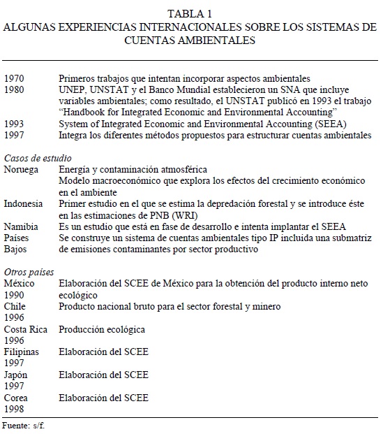 Para lograr estos objetivos el SCEE introduce una serie de conceptos y partidas complementarias al SCN, siendo la más trascendental, desde el punto vista patrimonial, la modificación conceptual del término "formación bruta de capital" y el de "acumulación de capital"; para ello se distingue a los activos económicos: ambientales, producidos y no producidos.5 De esta manera el SCEE representa junto con el "índice de bienestar económico sustentable" ISEW ( por sus cifras en inglés ), los esfuerzos más elaborados que incorporan los efectos de las actividades económicas en el ambiente y que durante estas dos últimas décadas dicho sistema se ha instrumentado en varios países del mundo, incluido México (tabla 1).6