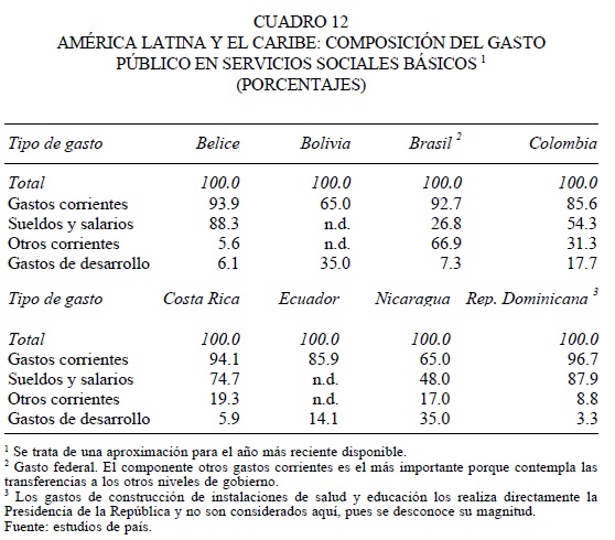 12 En los casos de Belice, El Salvador, Guatemala, Jamaica, Nicaragua, Perú y República Dominicana el gasto se obtuvo solamente del gobierno central. En Brasil comprende el gasto federal, estatal y municipal, y en Colombia el del gobierno central, el departamental y el municipal.