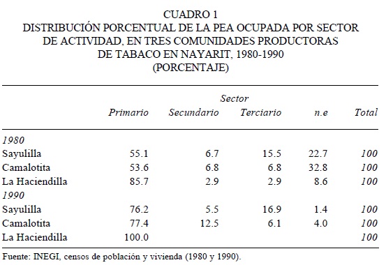 * El presente trabajo forma parte de una investigación más amplia intitulada "Estrategias de sobrevivencia y economía campesina ante el neoliberalismo. El trabajo familiar en la producción de tabaco en Nayarit, 1990-1999", realizada y presentada en el 2000 como tesis de maestría en Desarrollo Regional, en El Colegio de la Frontera Norte.