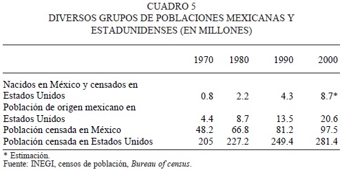 Desde finales de la década de 1980, esta relación oscila entre 8 y 14 salarios mexicanos por uno estadunidense, según las variaciones en la paridad del peso, pero su impacto sobre los flujos es perturbado por el efecto propio de la expansión de las redes migratorias y de los procesos de regularización de los indocumentados (como el IRCA).