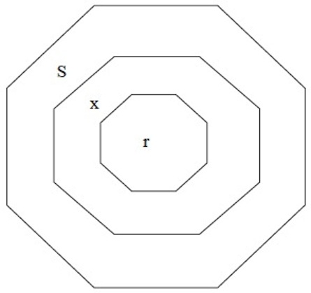 En todo silogismo, el término mayor (S) contiene al término menor (x) y el término medio (r) queda incluido en ambos términos (x) y (S). El axioma del silogismo se plantea de la siguiente manera: si la extensión del concepto (x) está incluida en el concepto (S), y si la extensión del concepto (r) entra en el concepto (x), la extensión del concepto (r) estará necesariamente incluida en el concepto (S). Gráficamente tenemos: