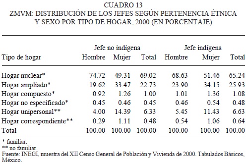 En una situación que es general tanto para los no indígenas como para los indígenas, la familia nuclear es la predominante y en su inmensa mayoría estos hogares tienen como jefe a un hombre.