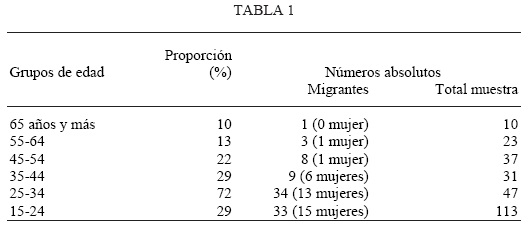 A partir de esta tabla comprobamos que el grupo de los 25 a los 34 años contiene la proporción más grande de personas que han trabajado anteriormente como asalariadas afuera de la localidad, es decir 72, por ciento. A pesar de lo limitado de la muestra, también comprobamos que hubo emigrantes asalariados en todos los grupos de edad, emigrantes que, salvo en el grupo de los 35 a los 44 años, son sobre todo hombres. Finalmente, en el grupo de los 15 a los 24 años tenemos una proporción más o menos igual de hombres y de mujeres en esta situación. Estos datos confirman, por una parte, los resultados de la investigación de Baños Ramírez y muestran, por otra parte, que el trabajo asalariado y emigrante está lejos de ser algo nuevo para la población del norte de Yucatán.