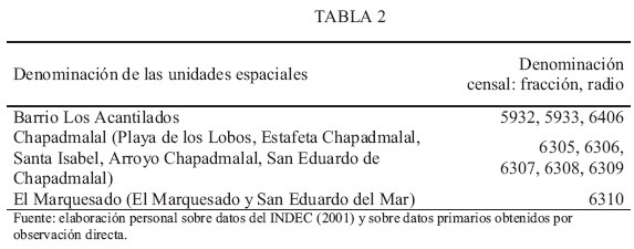 2 Las unidades espaciales que conforman el área de estudio pueden ser calificadas de barrios o localidades, depende el criterio que se adopte. Desde la estadística censal, en los dos últimos Censos de Población, Hogares y Vivienda, los radios censales correspondientes al área de estudio se incluyen en las fracciones rurales 63 y 64, incorporándose en el año 2001 dos radios pertenecientes a la fracción 59. En función de esta clasificación y de las características que poseen las unidades espaciales, se tomó la propuesta de Vapñarsky y Gorojovsky (1990), quienes conciben a la localidad (poblado, pueblo o ciudad) como aglomeración, opinión que fue adoptada como criterio censal por el INDEC desde el año 1991. Es decir, se consideran localidades las "... áreas de edificación bastante compacta, interconectadas mediante una red densa de calles", y prosiguen: "No sería razonable exigir, además, que la aglomeración se defina como área edificada continua ... dos o más áreas edificadas contiguas cuyos bordes disten entre sí no más de dos kilómetros a lo largo del camino más corto se consideran aquí partes componentes de una sola aglomeración (Vapñarsky y Gorojovsky, 1990: 127). Siguiendo estas delimitaciones, que fueron adoptadas por el INDEC, se analizarán dos localidades y un barrio (Los Acantilados).