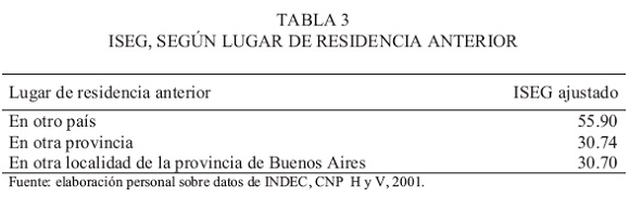 A escala del partido, el ISEG presenta los valores mostrados en la tabla 3 y se constata que no solo es importante el aporte de migrantes, sino que además estos no tienen una distribución homogénea, destacándose en este sentido las personas que habitaban previamente en otro país.