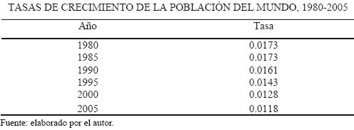 1 Las tasas de crecimiento demográfico para los años exactos, se estimaron tomando un promedio aritmético entre las tasas quinquenales de incremento poblacional de dos periodos consecutivos del libro (Naciones Unidas, 2005).