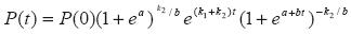 En la función de r(t) se observa que cuando t tiende a infinito, r(t) tiende a k1 Esto significa que k1 es la tasa de crecimiento demográfico a la que tiende la población cuando t tiende a infinito. Los dos primeros factores de la función Ρ(t) son constantes y quedan definidos cuando se realiza el cálculo de la función para t = 0, es decir, cuando se establecen las condiciones iniciales. Es importante aclarar que el momento t = 0 representa el año de 1980, que es el punto de arranque.