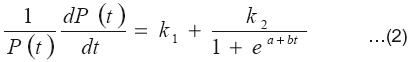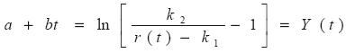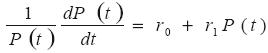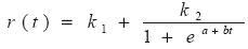 Donde r(t) es la tasa instantánea de crecimiento de la población y es función del tiempo. Supongamos que se puede representar una declinación mediante la logística, bajo la hipótesis de que la dinámica de este componente es lineal en el tiempo, de la siguiente forma: