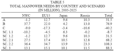 Total Manpower Needs of around 11.7 million. As a response, the countries in our sample have imported 17.3 million immigrants.
