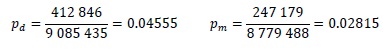 Haremos el supuesto que el cociente pm/pd de 1995-2000 fue el mismo para los quinquenios previos, con lo cual, para 1985-1990: