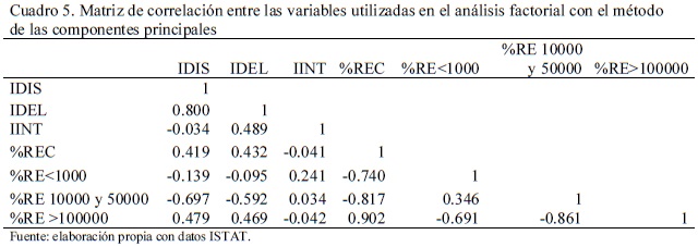 Con el fin de proporcionar una síntesis de todos los resultados e identificar las principales características de la evolución de los patrones de asentamiento de las principales comunidades de inmigrantes en Italia durante el período considerado, se ha decidido utilizar el Análisis Factorial con el método de los Componentes Principales (ACP). Los indicadores considerados en el análisis son los siguientes: