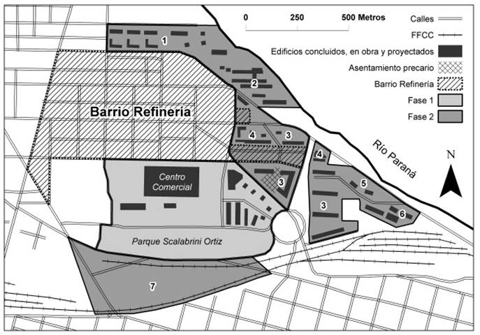El sector residencial del barrio Refinería y la primera fase de Puerto Norte no se superponían originalmente en sus límites. Sin embargo, en el marco de la segunda fase la Ordenanza 7892 de 2005 se impuso una división del barrio en dos sectores, a cada uno de cuales se les aplicó una normativa distinta, con impactos presumiblemente diferentes en cuanto a la gentrificación.