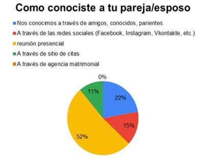 En primer lugar, en entrevistas personales: ninguna mujer conoció a un chileno a través de una agencia matrimonial. En segundo lugar, se obtuvieron los mismos resultados en la encuesta realizada en Facebook (Figura 3).