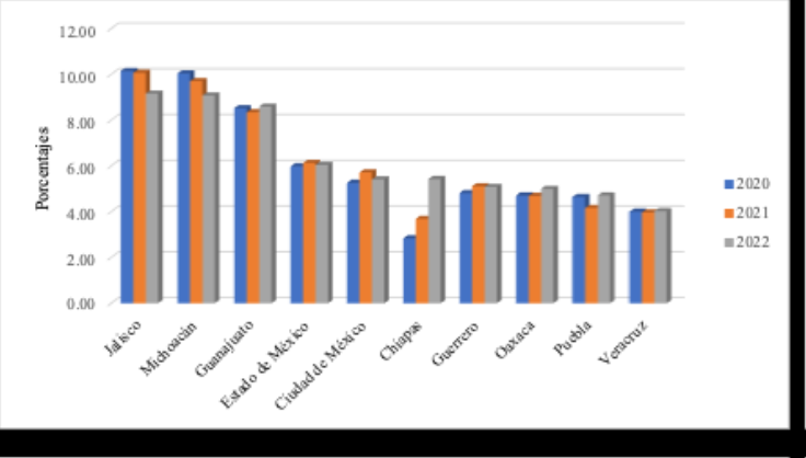 Figura 2 Principales entidades federativas receptoras de remesas, 2020-2022