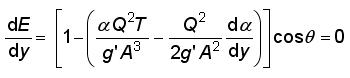 donde: E energía específica; y tirante; Q gasto; T ancho de superficie libre; A área hidráulica; θ ángulo que forma la plantilla de un canal de eje recto con la horizontal; g'=gcosθ.