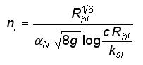 Cuando la pared se comporta como hidráulicamente rugosa, se puede incluir la variación de n en cada subsección mediante la ecuación de Nikuradse y la de equivalencia de n con el factor de fricción f, esto es