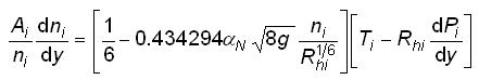 i=1, que ni es constante en cada subsección, es decir, dni/dy=0. También se consideró que el valor de n es 1.19 veces mayor que el que se encuentra con la ecuación (7), una vez que es rebasado el nivel de desbordamiento.