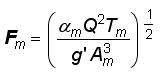 El número de Froude Fm del flujo cuando ocurre sólo en la subsección más profunda, es decir, para y=ym, (figura 1) se define en la forma convencional mediante la expresión: