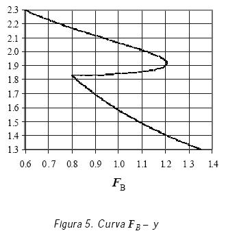 En figura 5 se muestra la curva FB y que corresponde al caso de Q=141.58 m3/s en el canal 1, donde se presenta que FB=1 en tres puntos diferentes; sin embargo, el tirante cerca del nivel de berma no se considera como crítico, ya que representa más bien un máximo de energía específica. En la gráfica de la figura 6 se puede apreciar la curva FY y, donde también se tiene FY=1 en tres puntos diferentes. Chaudhry considera válidos los tres tirantes, pero en este trabajo no se considera el cercano al nivel de berma.