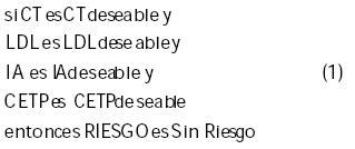 1. si CT es CTdeseable y LDL es LDLdeseable y CETP es CETPdeseable e IA es IAdeseable entonces R es SinRiesgo