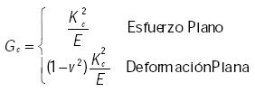 donde E es el módulo de Young, Kc es la tenacidad de la fractura y v es la razón de Poisson.